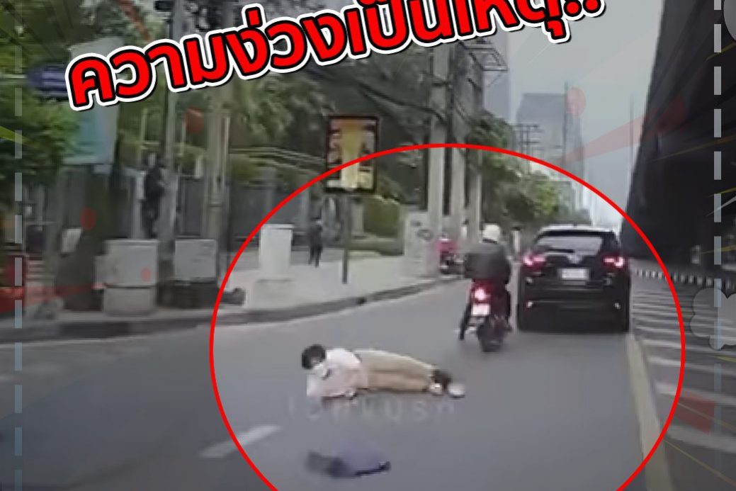 (คลิปที่รูปเพื่อดูคลิป) วูบเดียวเสียวยันคนขับรถตาม⁉ … #หนึ่งเหตุผล ที่”คนซ้อนควรใส่หมวกกันน็อค”‼